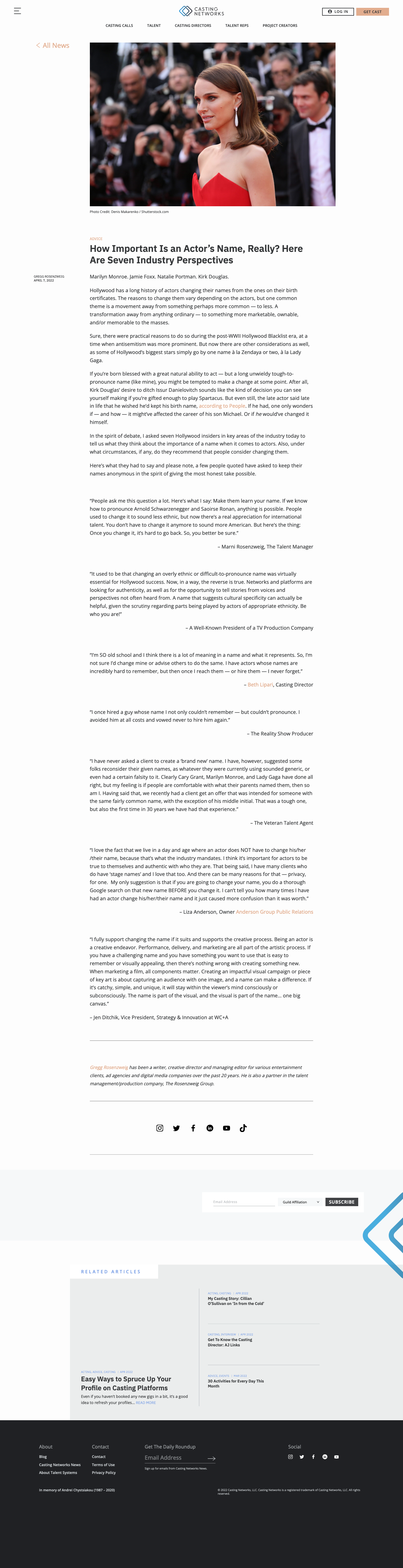 If you're an aspiring actor with designs on being a big star, you've probably spent some time wondering whether your birth name is the best one for you. After all, Hollywood has a long history of people changing their names to be more palatable to the masses. But how important is a name when it comes to standing out? To sort it out, I recruited seven industry people to share their POV on the topic.